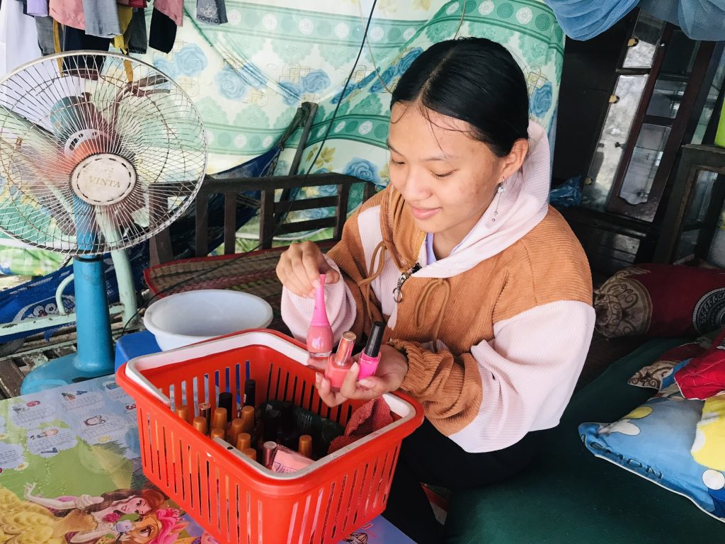 Trang kể, năm lớp 8, ông bà ngoại đau ốm triền miên nên em quyết định nghỉ học để đỡ phần gánh nặng. Em xin làm phục vụ trong quán nước, gom góp tiền đưa ông bà phụ phần thuốc thang. “Lúc đó em rất thích đi học, vì em có ước mơ từ nhỏ là được làm cô giáo. Nhưng thấy ngoại đau ốm tới lui, em không dám tâm sự vì sợ ông bà khổ tâm”,