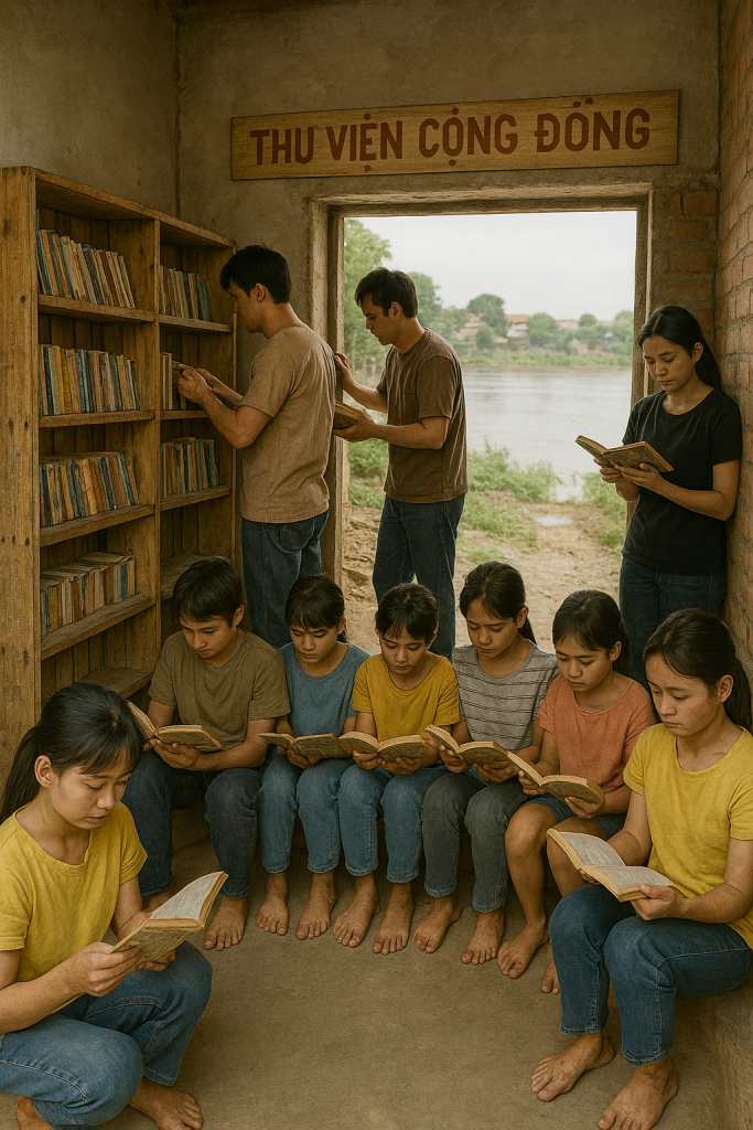 Ở một xóm nhỏ ven sông Hồng, nhóm thanh niên đã cùng nhau gom góp sách vở cũ để dựng nên một “thư viện cộng đồng”. Chỉ là một gian phòng nhỏ với vài chiếc kệ gỗ, nhưng nơi đó sáng bừng tiếng cười và ánh mắt say mê của lũ trẻ.